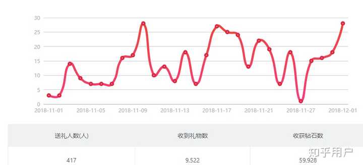 11月份等我了解平台规则并且努力直播后情况终于大有改观。这个月我共直播29天,场次46场,直播时长188.5小时,礼物流水上升到5992.8元(RMB)。