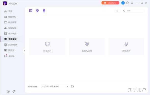 [官网]万兴优转 - 音视频格式转换&视频压缩&视频录制&DVD刻录全能视频格式转换器1.打开万兴优转,选择音画录制界面,万兴优转支持屏幕录制、摄像头录制、音频录制三种形式,录制音频选择屏幕录制即可