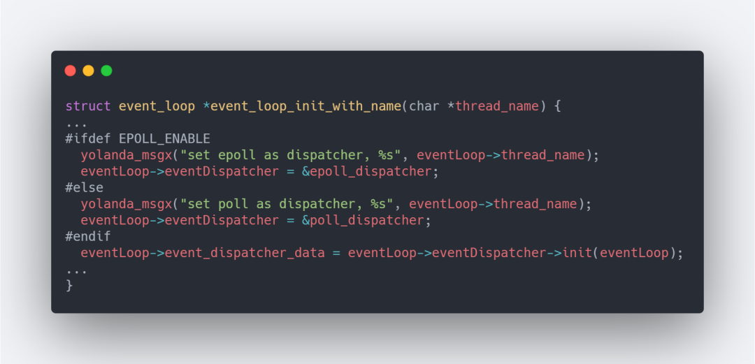 在lib/event_loop.c中的event_loop_init_with_name中,可以发现通过宏EPOLL_ENABEL来决定使用哪一个