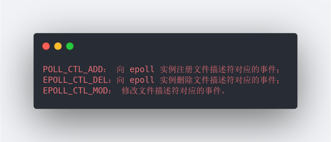 服务端将这些请求分别同步分派给多个处理线程,即IO多路复用统一监听事件,收到事件再进行分发。那么图中重要的两个关键字是啥意思?