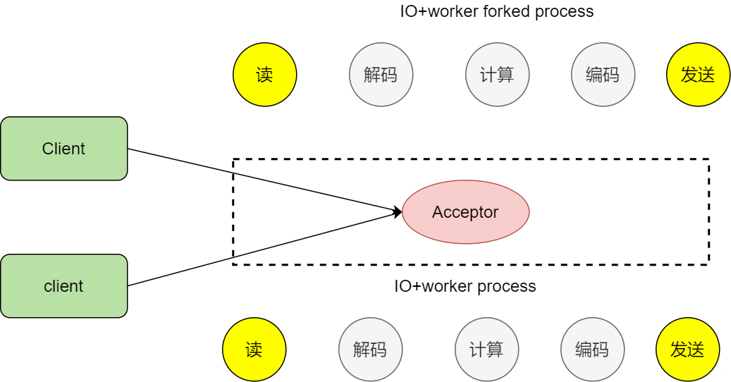 上述几种方案都是在一个线程分发,显然没有利用当今的多核技术,我们完全可以让每个核作为一个IO分发器进行事件的分发,这其实就是reactor模式,也是后续将谈到的事件驱动。