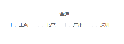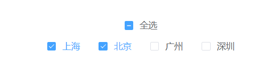 <template><div id="app"><el-checkbox :indeterminate="isIndeterminate" v-model="checkAll" @change="handleCheckAllChange">全选el-checkbox><div style="margin: 15px 0;">div><el-checkbox-group v-model="checkedCities" @change="handleCheckedCitiesChange"><el-checkbox v-for="city in cities" :label="city" :key="city">{{city}}el-checkbox>el-checkbox-group>div>template><script>export default {data(){return{checkAll: false,checkedCities: ['上海', '北京'],cities: ['上海', '北京', '广州', '深圳'],isIndeterminate: true}},methods:{handleCheckAllChange(val) {this.checkedCities = val ? this.cities : [];this.isIndeterminate = false;},handleCheckedCitiesChange(value) {let checkedCount = value.length;this.checkAll = checkedCount === this.cities.length;this.isIndeterminate = checkedCount > 0 && checkedCount < this.cities.length;}}}script>