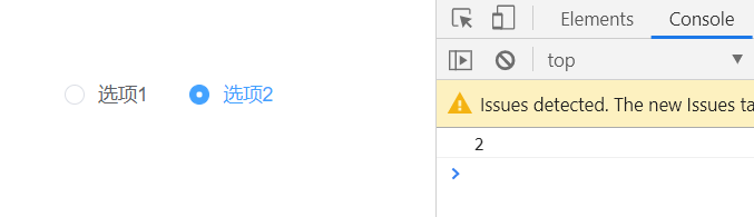 <template><div id="app"><el-radio v-model="radio" label="1" @change="change">选项1el-radio><el-radio v-model="radio" label="2" @change="change">选项2el-radio>div>template><script>export default {data(){return{radio: '1'}},methods:{change(){console.log(this.radio)}}}script>