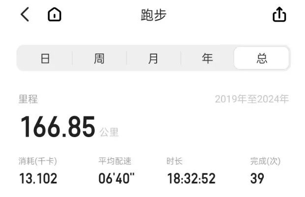 我今年1月份开始练习跑步,从 5 公里开始跑,一周跑两三次,持续了2个月左右,后面开始增加了点难度,跑8公里、10 公里,12 公里是我跑过最远的距离,到今天的总跑量还不到 200 公里。