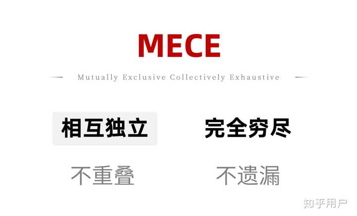 - 指导原则:MECE法则(相互独立,完全穷尽;不重叠,不遗漏)
