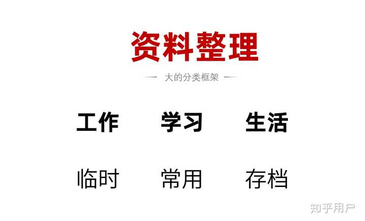 资料整理,我认为分成三大类即可:工作、学习、生活。