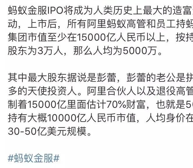 当然蚂蚁是史上最大IPO的公司(但后来却由于各种原因未能上市)