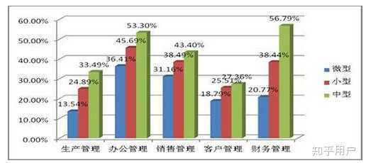 销售管理和客户管理应该合并在一起统称CRM系统,办公管理和CRM系统在中国推广时间最早,从2000年开始就在大力推广,已普遍被大家接受,财务管理因为财务部主导、用友、金蝶等财务标准化助推普及率很高,生产管理因为行业特点、个性化和软件成熟度普及率非常低!