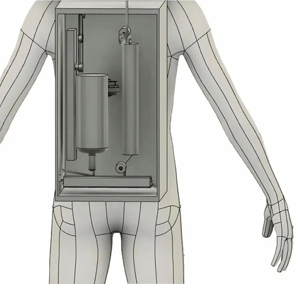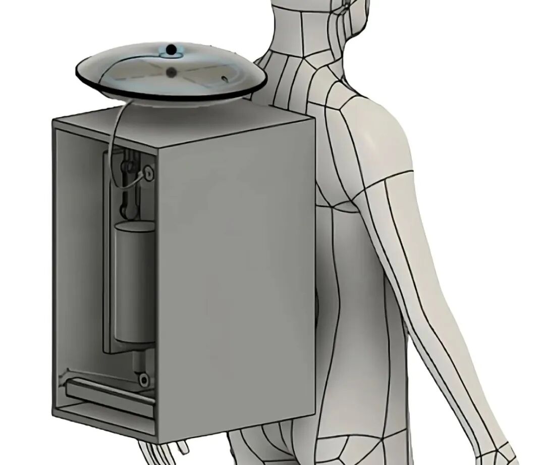 当佩戴者向尿杯中小便时,尿液会被一个集成的湿度传感器检测到,从而触发一个泵,将尿液从杯子的内衬中抽吸出来,进入一个相连的背包中。