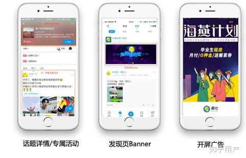 第一,最右的玩法是怎样的?最右有以下三大玩法,分别是话题详情/专属活动、发现页Banner和开屏广告,如下图所示: