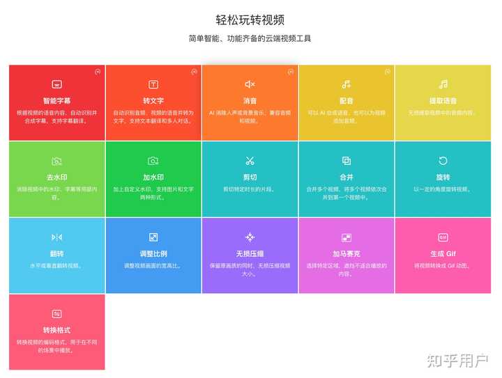 「云猫转码」是一款智能简单、功能齐备的云端视频工具,拥有智能字幕、消音(消除人声、背景音)、去水印、加水印等十多种功能: