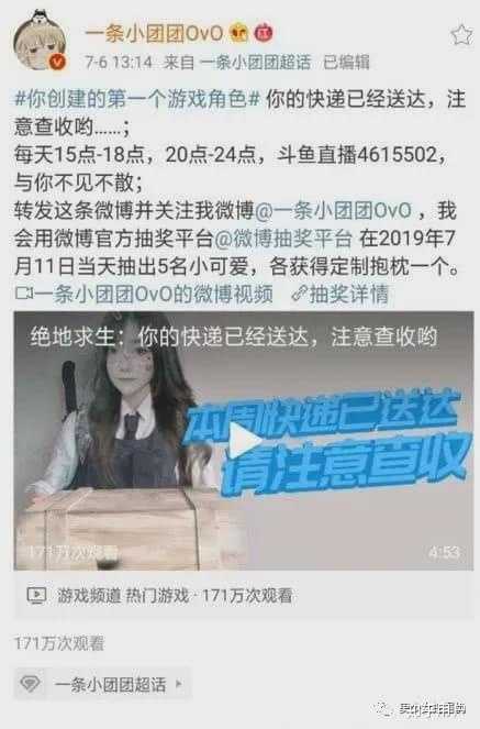 2019年7月6日,小团团发布了一条关于绝地求生的视频。