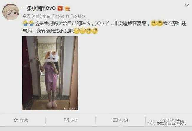 小团团曾经在微博上发布过自己穿睡衣的照片。