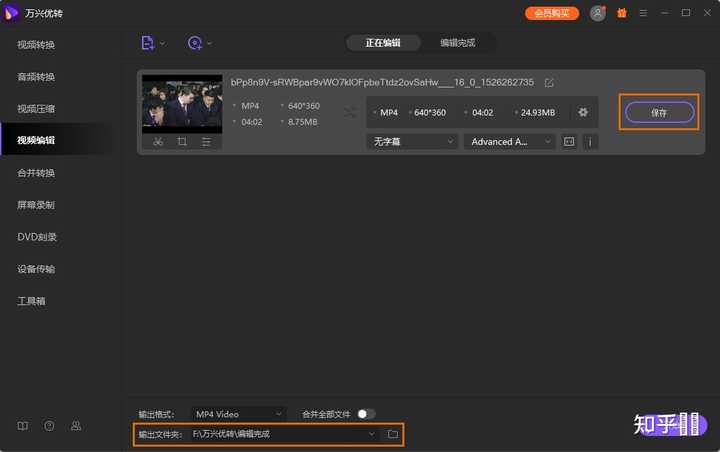完成剪切后,点击确定按钮,视频将出现在列表当中,在输出文件夹选择文件保存的位置,然后点击保存按钮即可完成。