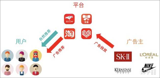 - 自然推荐:只需要考虑用户和平台之间的利益,提升用户体验,提升信息分发的效率。