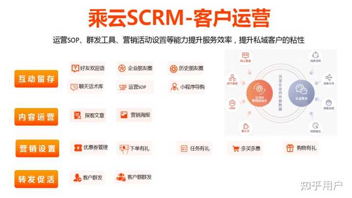 乘云SCRM基于企业微信帮助商家打造客户增长、客户运营、客户转化、客户管理于一体的营销变现全链路闭环。