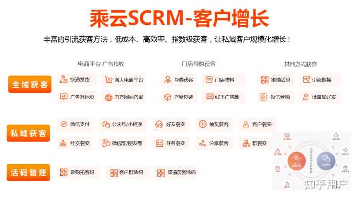 在客户增长阶段,乘云SaaS可通过丰富的全域引流+私域获客玩法,实现低成本、高效率的获客,让私域客户规模化增长。