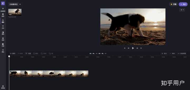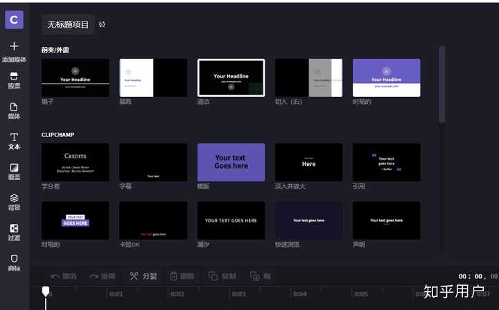 熟悉的排版模式,上面是视频素材库和视频的实时预览,下面是时间轴,左边是一些工具。