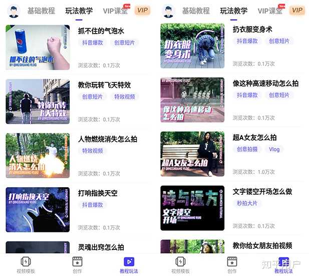 除了有专业的视频剪辑功能,还可有教程玩法,教你怎么拍怎么剪辑,比如教你制作透明壁纸、打响换天空、扔衣服变身术等等。