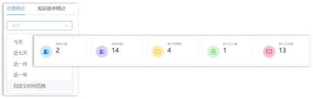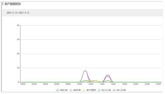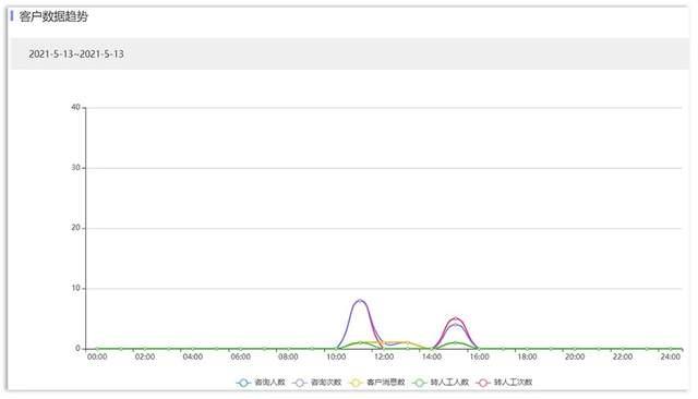 在芝麻客服后台可以看见关于访客的各项数据的统计,比如咨询人数、咨询次数、客户消息数、转人工数等。