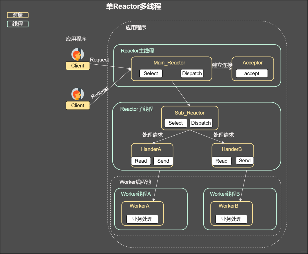 ok,咱们已经知道使用Reactor反应堆的方式同时分发Acceptor上的连接建立事件,但是我们还是没有完全实现解耦,这个Reactor线程既要分发连接建立,还要分发已经建立连接的IO,如果太多的客户请求是不是会处理不过来,那么能不能让其分离嘞