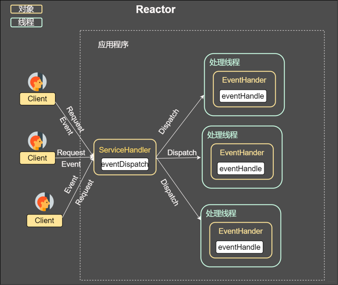 在一个单独的线程运行,主要负责监听和分发事件。就仿佛我们手机设置的转接,将来自前任的电话转接给适当的联系人