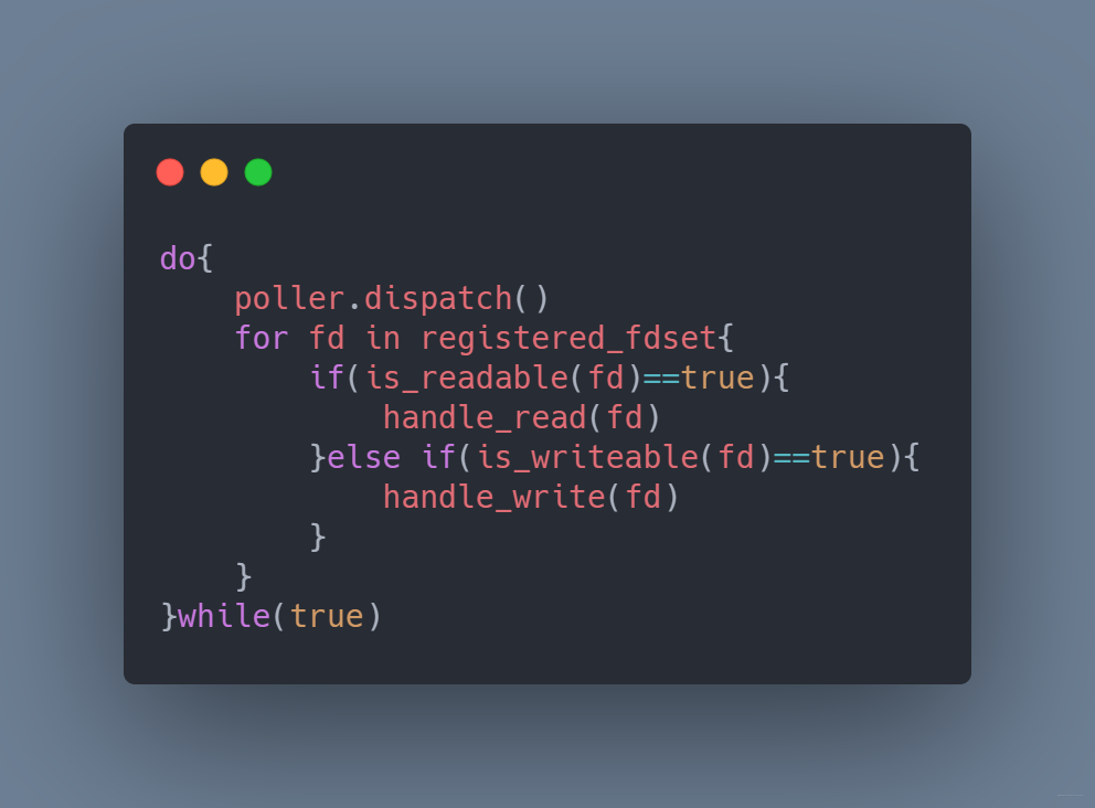 我们每次dispatch就相当于对所有的套接字进行排查,这样显然效率不是很高。如果dispatch之后只提供有IO事件或者IO变化的套接字就好了,这就是epoll的设计