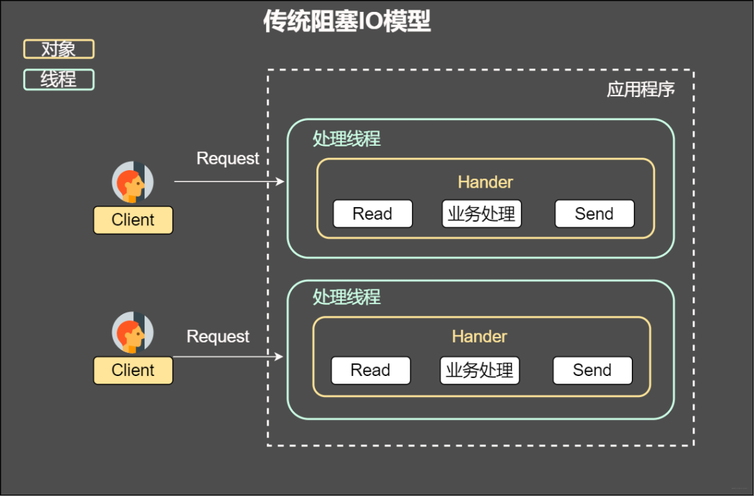第一种是采用IO复用的模型,所谓IO复用模型即多个连接共享一个阻塞对象,应用程序只会在一个阻塞对象上等待。当某个连接有新的数据处理,操作系统直接通知应用程序,线程从阻塞状态返回并开始业务处理