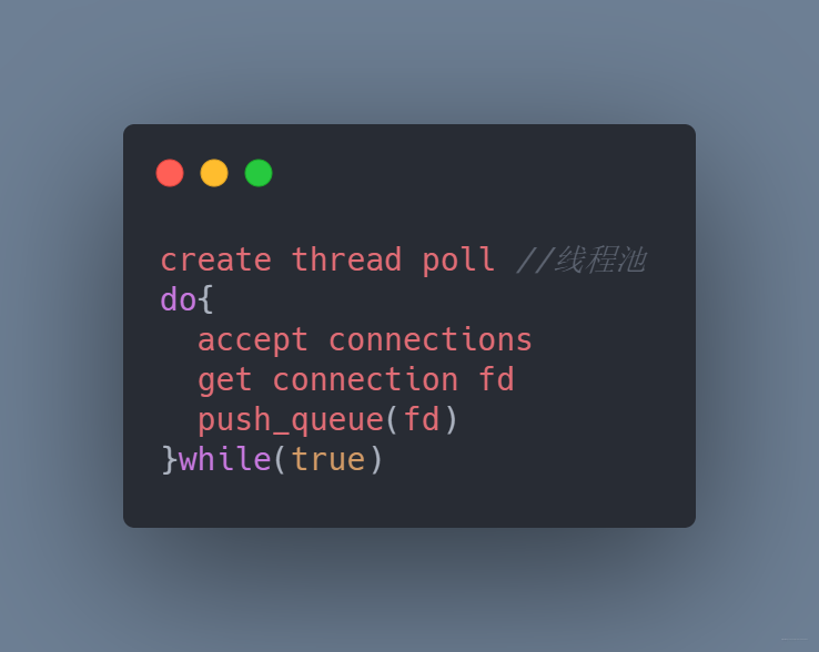 我们在服务端启动的时候,预先分配固定大小的多个线程,当新连接建立的时候,从连接队列中取出这个连接描述字进程处理
