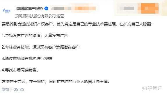 看到上面顶呱呱一本正经地回答:知识产权行业如何寻找客户?还列出了1,2,3,4,条