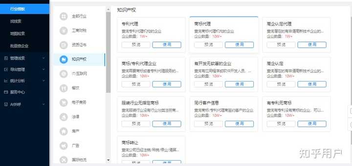 举个例子,咱们是做知识产权服务,比如要找有专利没有商标的企业。打开系统的行业模板,找到知识产权行业,根据需求使用行业模板筛选客户。