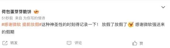 还有网友高呼:这下好了,班都不用上了,微软提前让众人提前下班了!