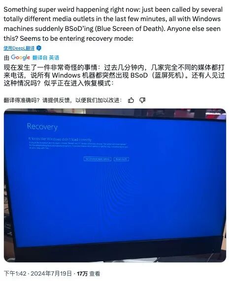 不止国内,也有不少国外用户涌入社交平台表示,Windows 机器都突然出现 BSOD(Blue Screen of Death,“蓝屏死机”)情况,美国、新西兰、日本、印度等国家均有用户报告蓝屏问题,这一问题似乎很普遍。