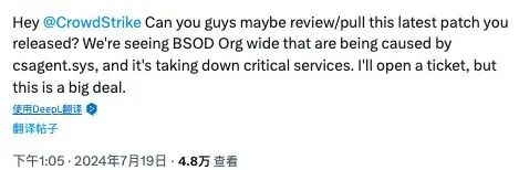 CrowdStrike 更新引起大范围蓝屏死机事件