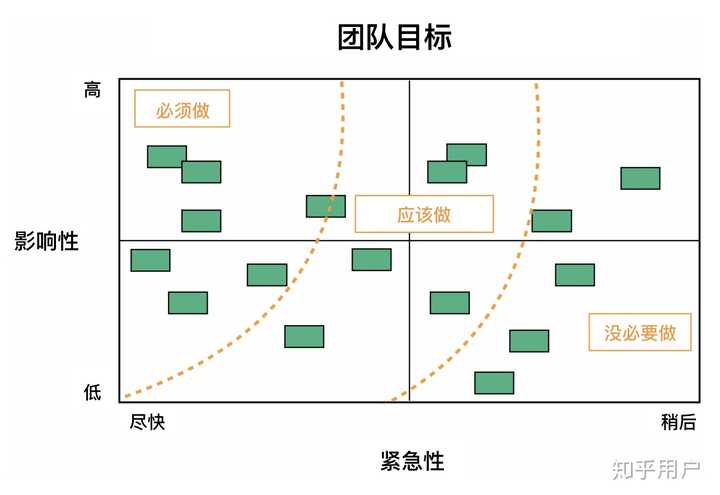 解决这个问题的办法很简单:首先让管理层的目标达成一致,并坚持做下去(做起来容易,坚持下去难)。如果一个项目不符合目标,它就会进入“没必要做”的那一栏。另外,成员了解团队的终极目标会更容易地做出日常自主决策。