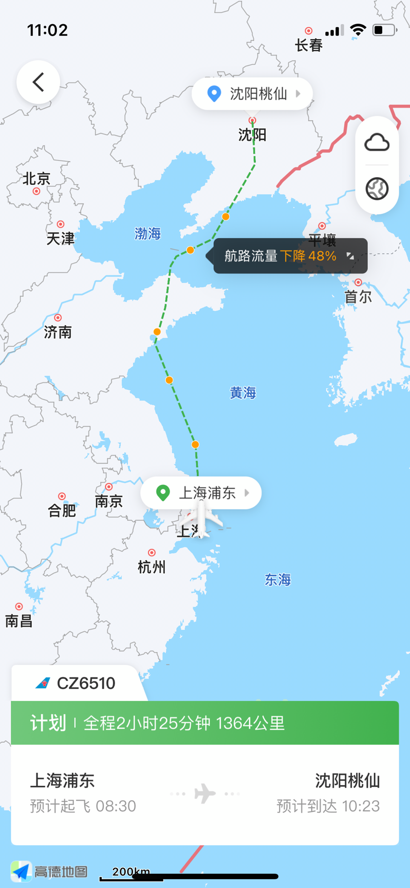 图:南航CZ6510航班(上海-沈阳)