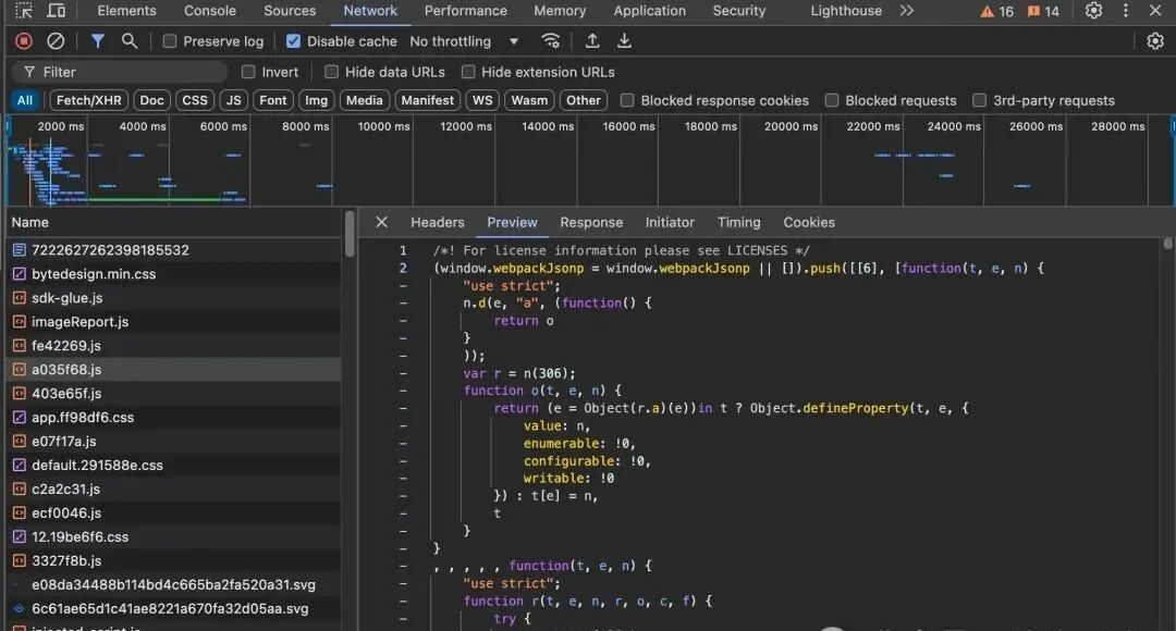 第一次访问时,浏览器会请求服务器的资源并将其缓存到本地,比如 a035f68.js 文件会被缓存到浏览器的磁盘或内存中。接下来,当用户刷新页面时,浏览器会优先从缓存中读取资源(如从 disk cache 或 memory cache),以加快加载速度。