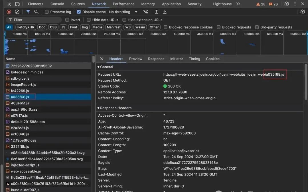 下面模拟了掘金网站的静态资源获取,当请求静态资源的时候,实际访问的是服务器中静态资源存放的位置: