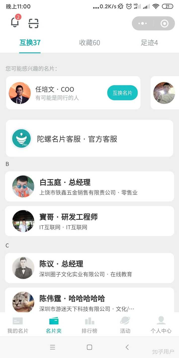 名片夹包含了所有与你交换名片的用户,除了方便快速查找以外,还提供另一项功能,扫描添加整理收到的纸质名片。很多商务人士都有名片盒用于存放自己或他人的名片,但随着名片增加难免会有携带不方便、翻找麻烦等问题,甚至还有丢失的风险。