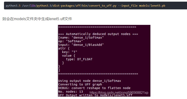 需要注意的是:该转化过程只支持在x86平台上实现,如果想在TX2等嵌入式平台上使用tensorrt,需要先在x86平台上将pb模型转化为uff文件,然后再拷贝到TX2上使用