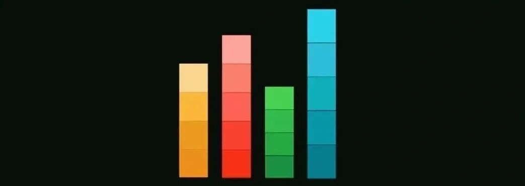 表达形态:堆叠的矩形来表示类别,里面的小方块表示每个类别内部的元素,小方块的长度代表元素的值,堆叠而成矩形代表类别的值。