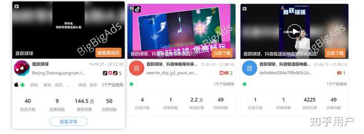 国内在广告创意抓取这方面做得比较好的很有几个平台,比如Dataeye、APPgrowing、BigBigAds、热云数据等等,功能都大同小异,随便拿一个BigBigAds来说吧。