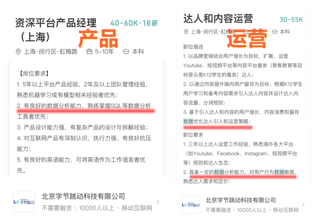 我从招聘网站爬取了字节跳动9600余条岗位数据后发现,上到专家级别,下到最基层员工,从产品、运营、销售,到财务、HR,80%岗位的JD,都不放过强调要掌握「数据分析」能力。