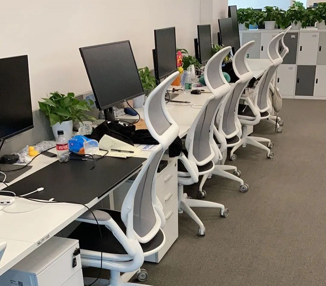 充满科技感的办公室,人均配价小一万的人体工学椅↓