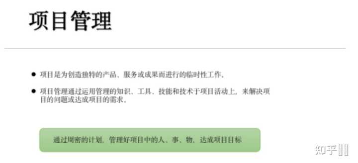 项目管理就是对一个项目的执行前的规划,执行时的监督,事后的复盘等等。