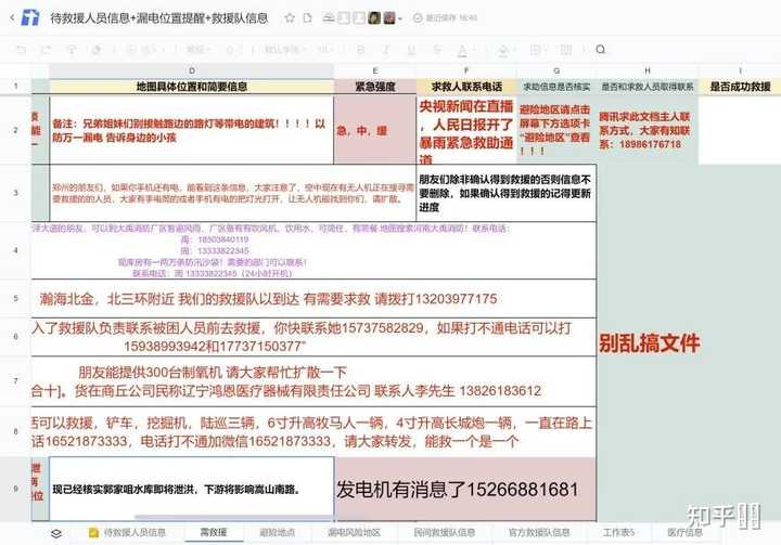 如何看河南抗洪救灾期间普通人发起的腾讯文档《待救援人员信息》,在线“救命文档”发挥巨大作用?