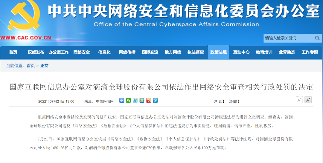 情节严重、性质恶劣,滴滴确认违法违规被罚80.26亿!