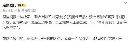 去年底,余承东在2023年花粉年会上表示,将在明年(2024年)推出非常有引领性、创新性、颠覆性的产品。