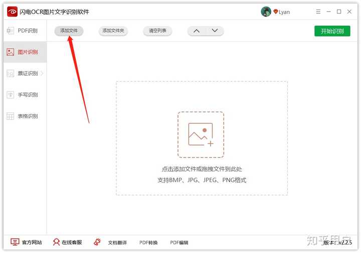 第二步、接下来,点击“添加文件”将需要识别文字的图片添加进来,也可以一键添加多张图片进行识别。