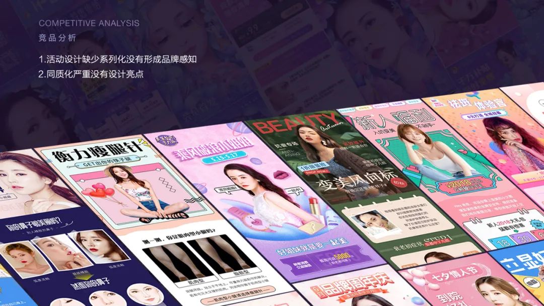另一方面目前市场上医美相关的 APP 视觉同质化严重,一般的表现方式较难引起用户的关注,所以在这种情况下,我们希望为医美打造全新的、出彩的、体系化的运营品牌视觉,提升品牌美誉度。